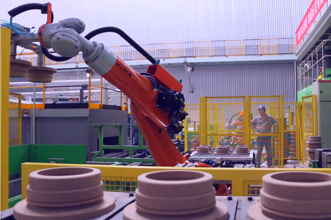自动仓储、自动输送、自动上芯等一大批自动化设备相继投用,机器人“工友”大显身手,铸管二车间荣获“河南省智能车间”。
